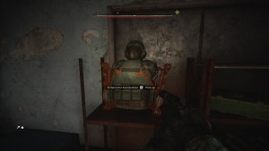 局がもはや脅威ではなくなったら、建物の遠端にある発電機に向かい、それを起動します。その後、デポの入り口に戻り、2階に通じるドアを探します。内部には、ボタン付きのコンソールがあります。このボタンを押すと、建物内のセルが解放されます。リリースされたセルに向かい、内部で検索します。ロッカーに保管されているセバIスーツがあります。