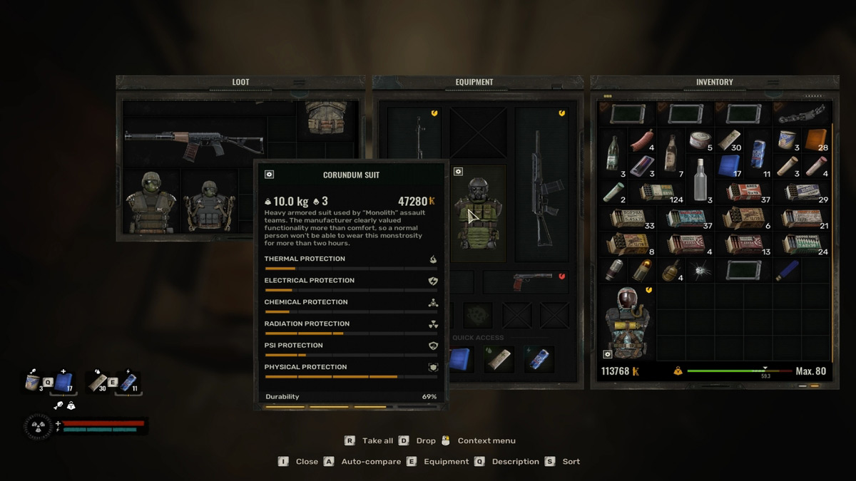 コランダムスーツは、リストのStalker 2で2番目に良い鎧としてランク付けされており、ダイヤモンド外骨格のすぐ下で、一流の物理的および放射線保護を提供しています。ただし、その顕著な欠点はその重量です。10kgで、このリストで最も重い鎧です。