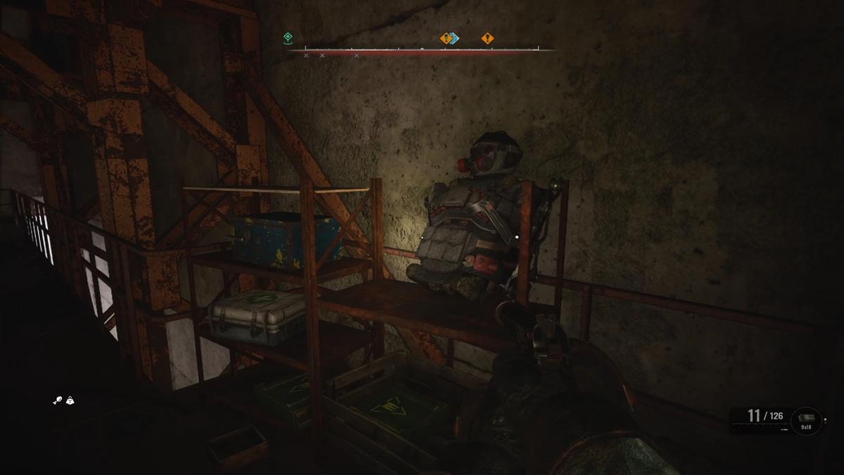 ストーカー2のオペレーターの外骨格を見つけた場所は1つだけです。そこにいると、フッ素化ステーションの2階に到着する必要がありますが、そこに着くには少しパルクールが必要です。
