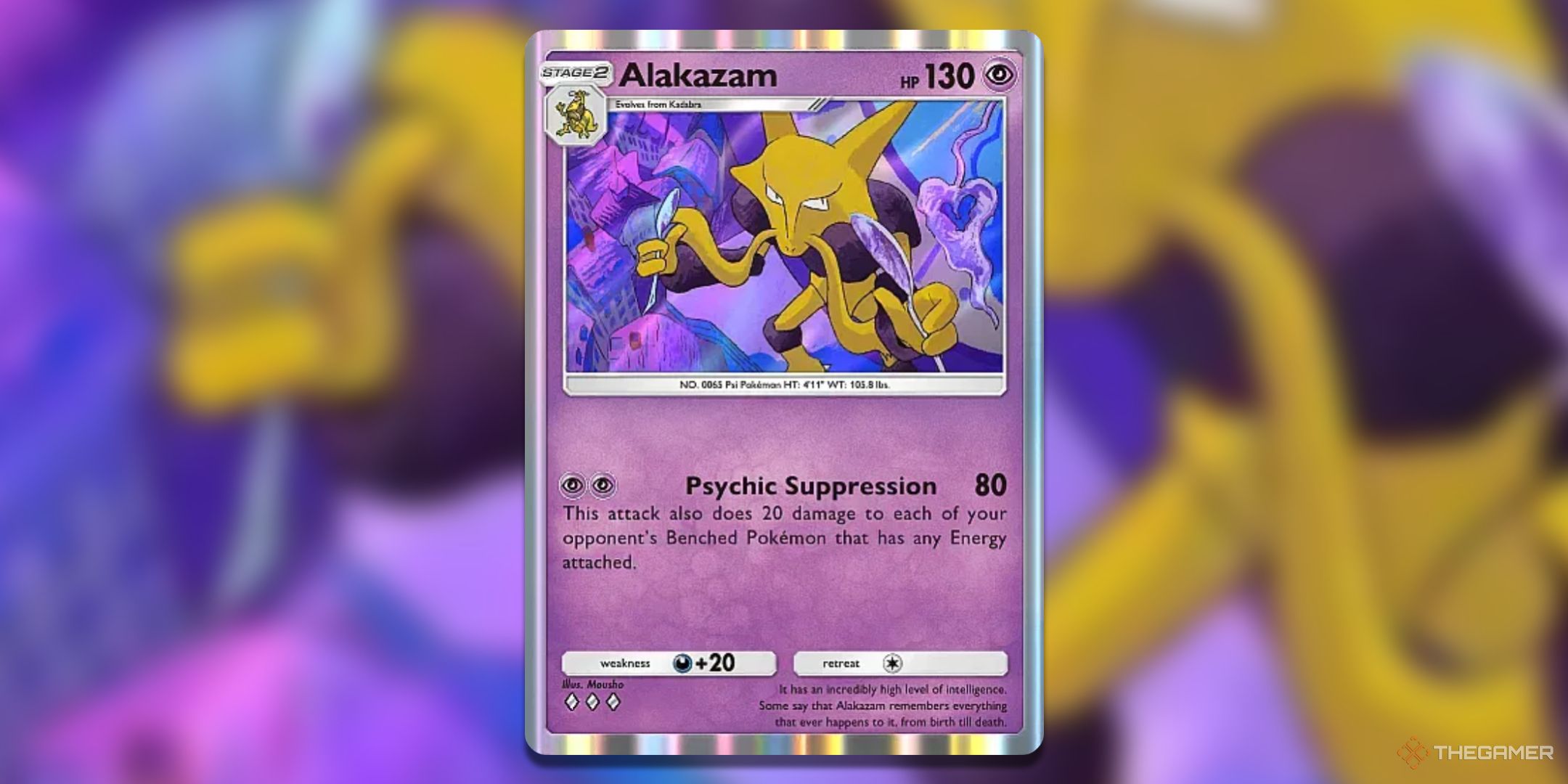 アラカザムはエネルギーで遊ぶのが大好きです。その遺伝的頂点のカウンターパートは、ポケモンがより多くのエネルギーを与えるほど多くのダメージを与えますが、これはそれを広めるのが好きです。サイキック抑制は、使用するのに2つのエネルギーのみで、相手のアクティブなポケモンに80のダメージを与えています。