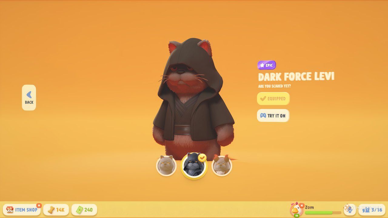 スターウォーズに触発されたダークフォースレヴィスキンは、レヴィを一種のシスの領主に変えます。肌はレヴィの恐ろしい性格を引き出します。彼がダース・ベイダーに変わる直前に肌がアナキン・スカイウォーカーに基づいていると仮定するのは簡単ですが、彼の顔を隠す特大のフードは彼にレヴィに完全に合う不吉なオーラを与えます。