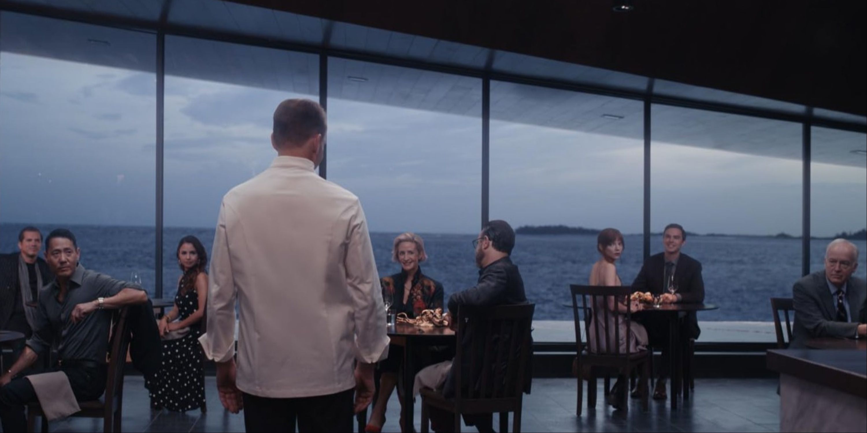 テイラー・ジョイのマーゴットとホルトのタイラーは、2つの反対の社会階級からのものです。タイラーと他のウルトラリッチのゲストは、スローキの作品にふけるためにそこにいますが、彼らが前回そうすることを彼らがそうすることはほとんど知りません。それらすべてにうんざりして、シェフのスローキは、復venと最終的に死の側面で彼のコースを提供します。