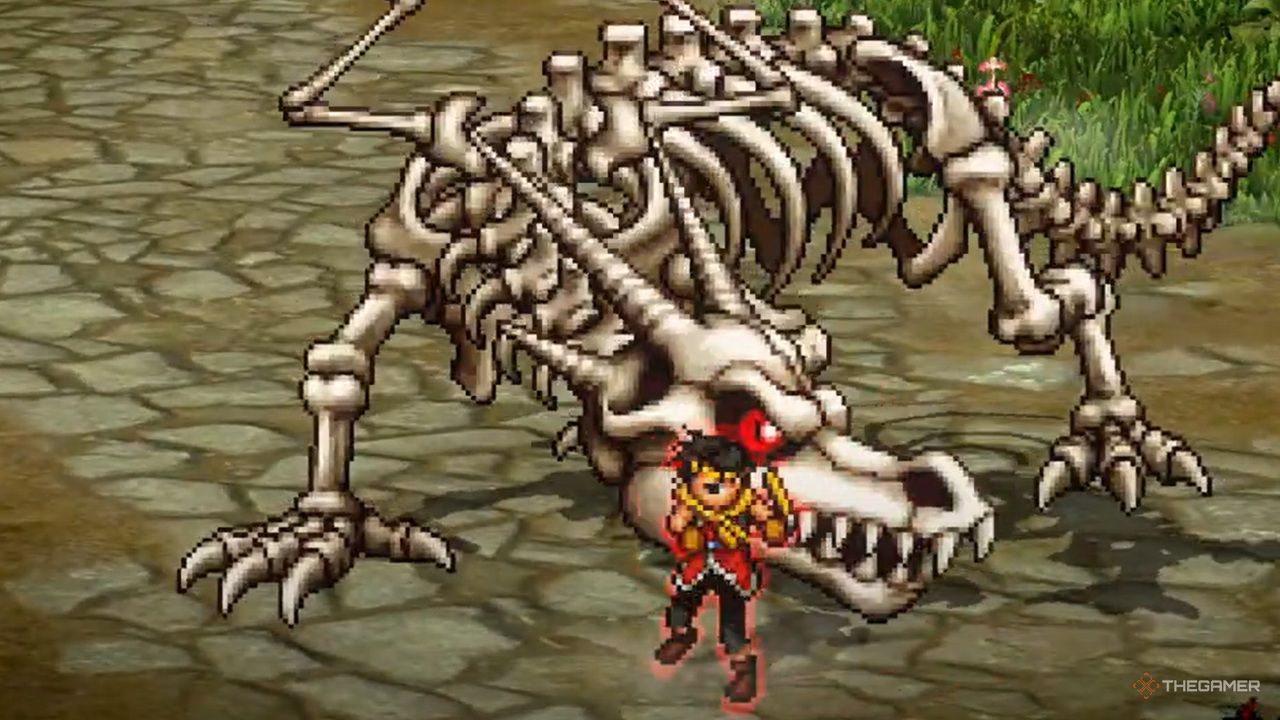 Suikodenのアンデッドドラゴンの2回目の反復は、最初のドラゴンと同じくらい致命的です。 Suikoden 1のゾンビドラゴンのように、骨ドラゴンは病気に耐えるものであり、ボスであり、すでに死んでいるため、即座に死の呪文で倒すことはできません。