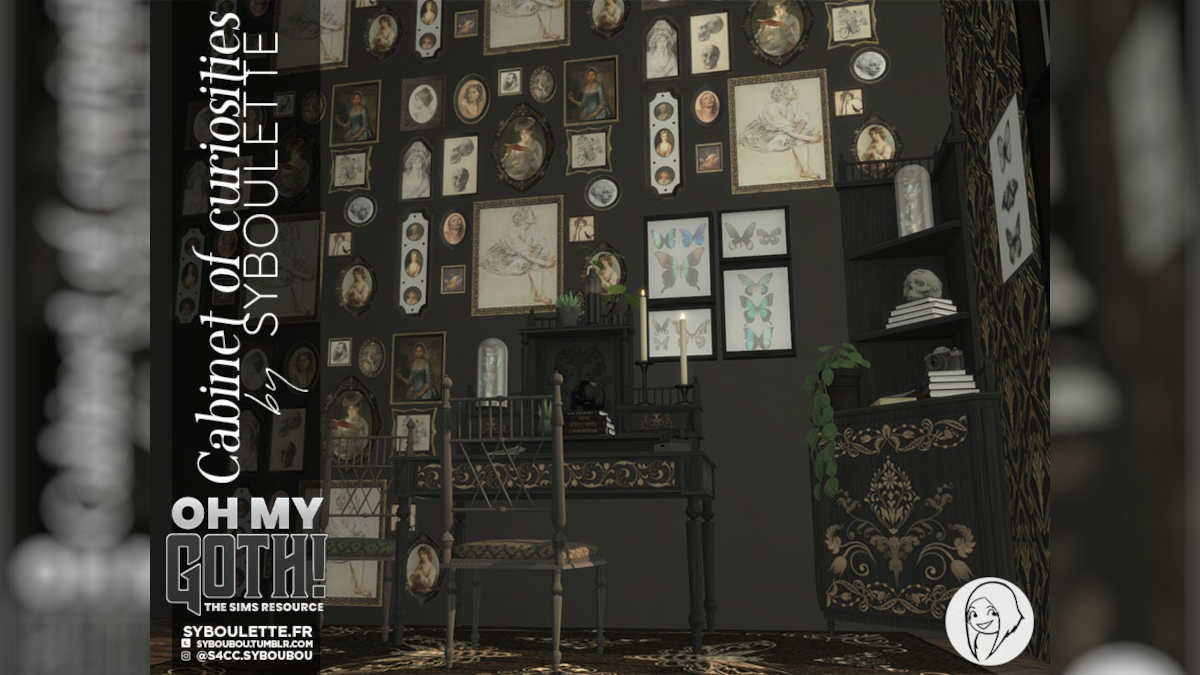 私が暗い学界の雰囲気で家を飾っているときはいつでも(正直に言って、それは頻繁にそうです)LapanemonaによるDark Fairy Talesコレクション私の頼りになるCCキットの1つです。 14個のアイテムが付属しており、すべて複数のスウォッチにあり、常にあらゆるインテリアにゴスのタッチを追加するだけです。含まれているアイテムのいくつかは、Goth Aestheticの外側の使用の可能性が限られていますが、スタイルに関係なく、混乱と壁のアートを使用できます。