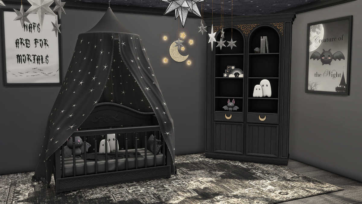 あなたのシムが大人になり、家族を始めたからといって、彼らがゴスの根を置き去りにする必要があるという意味ではありません。リトルゴスナーサリーセットまた、Lapanemonaによっても、そのようなシムとその遺言の子供たちに最適です。新しい到着のためにセットアップするために必要なすべてのものが付属しています。これらはすべて、通常のブラックゴススウォッチにありますが、各アイテムをゴスの美学の外でも便利にするためのよりニュートラルな配色も付属しています。