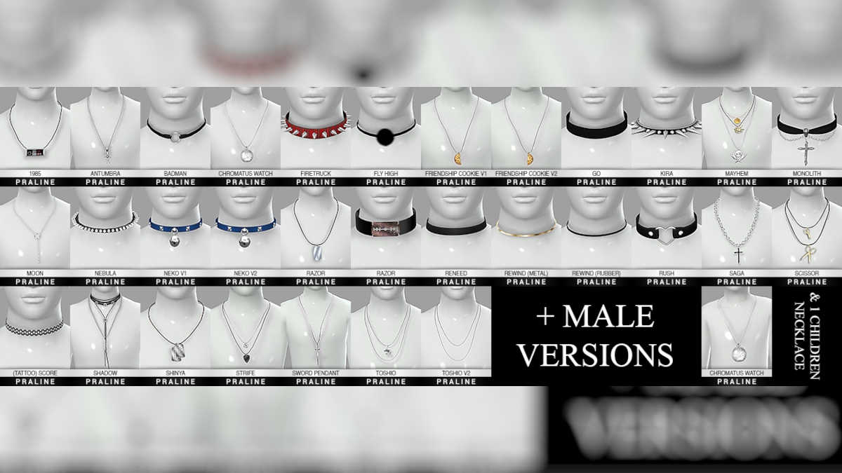 すべてのゴスサブカルチャー間に共通のファッショントレンドがある場合、それはチョーカーであり、すべてのスタイルに何百もの異なるタイプがあります。 CASの目的のために堅実なコレクションが必要な場合は、Pralineimsによる究極のネックレスコレクション金のファイルサイズの価値があります。 170の異なるスタイルのチョーカーやネックレスが付属しており、セットにはすべての人に何かがあります。
