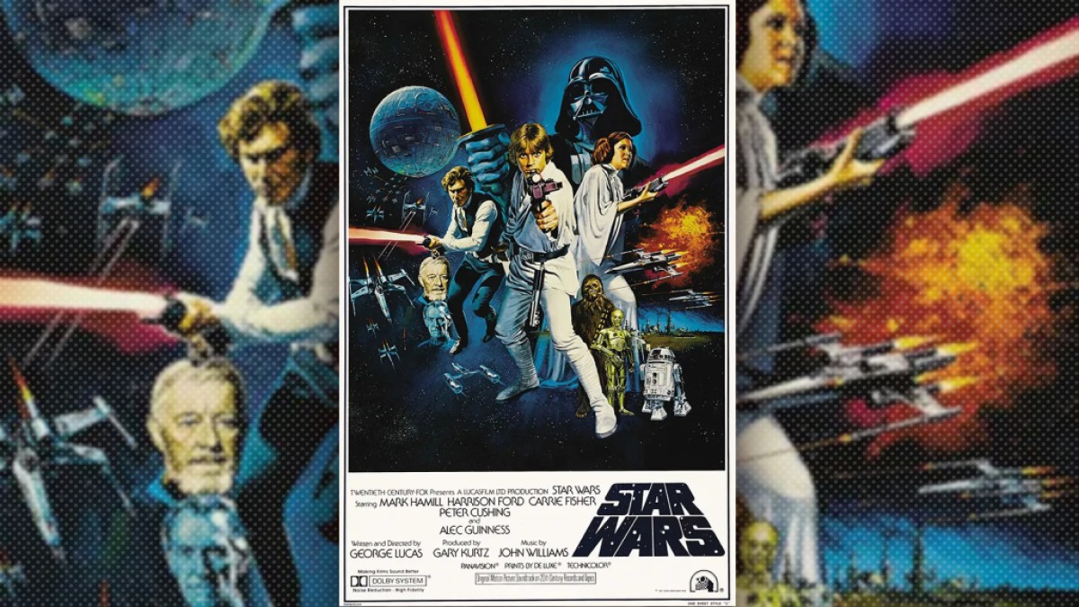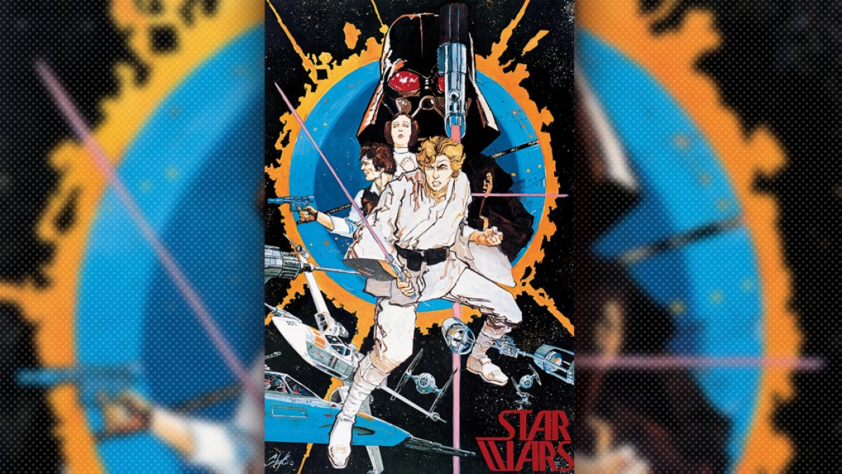 あなたが今までに間違いなく理解したように、最初のスターウォーズ映画(後に「新しい希望」と字幕」されたものには多くのポスターがありました。これは、1年以上劇場に滞在しているフリックによるものの一部でした(覚えておいてください:1977年にはホームビデオはありません!)。この時代の多くの壁の芸術作品のうち、最も風変わりな(そして最もクールな)の1つは、ドリュー・ストルザンとチャールズ・ホワイトIIIです。木製の壁に貼り付けられたポスターのように見えるように作られており、その下からオビ=ワンのケノービの「引き裂かれた」肖像画が出ています。この風変わりなデザインは必然的に生まれました。ストルザンとホワイトのオリジナルアートワークには請求ブロックの余地がありませんでした!幸いなことに、彼らの高概念ソリューションは完全に目を見張るものを証明しました。
