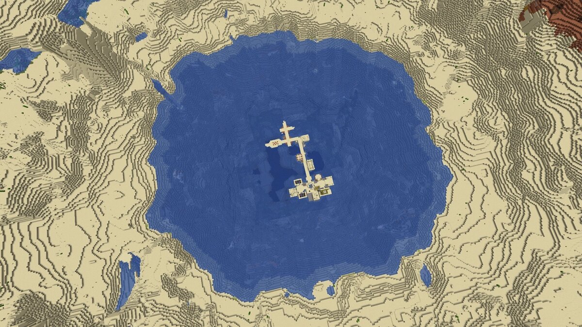ゾンビの村がそこに詰まった砂漠の真ん中にある湖岸にスポーンします。湖はかなり深く、座標X:50 Z:-250には近くに普通の村があります。略奪品が必要な場合は、X:350 Z:-300を調整するために東に移動して、素敵な砂漠の寺院を用意してください。