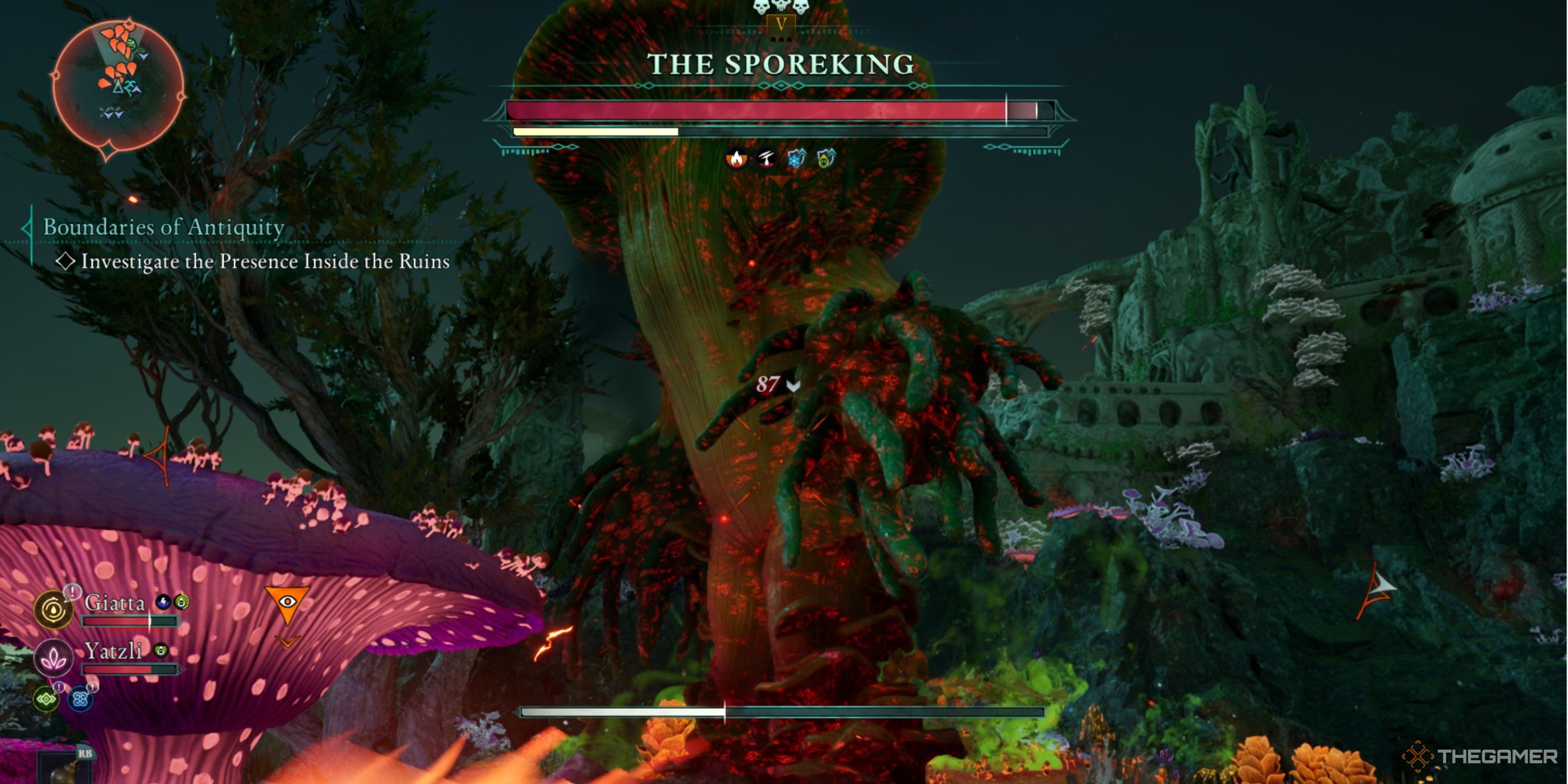 Solace Keepでバウンティボードに行っていない場合、古代の境界と呼ばれるサイドクエストを実行した場合、スポアキングに遭遇する可能性が高くなります。この巨大な有毒キノコは、あなたを群がらせるために一団のスポーリングを召喚します。