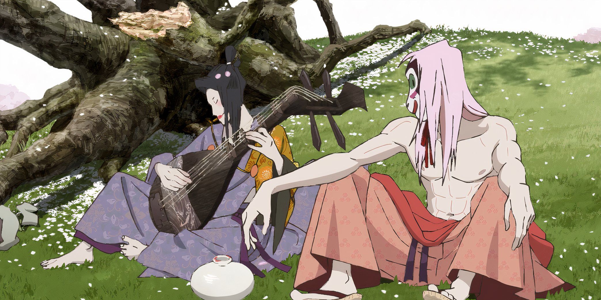 呪いの結果としてユニークな見当識障害のある特徴を持って生まれた個人の旅は、inu-ohの両親が彼の体のあらゆる部分を衣服と顔で覆い、彼の外観を隠すための珍しいマスクで覆うことにしました。彼がどんなに声をかけられても、彼の状況について前向きなままで、INU-OHはTomonaという名前の盲目のBiwaプレーヤーに会います。