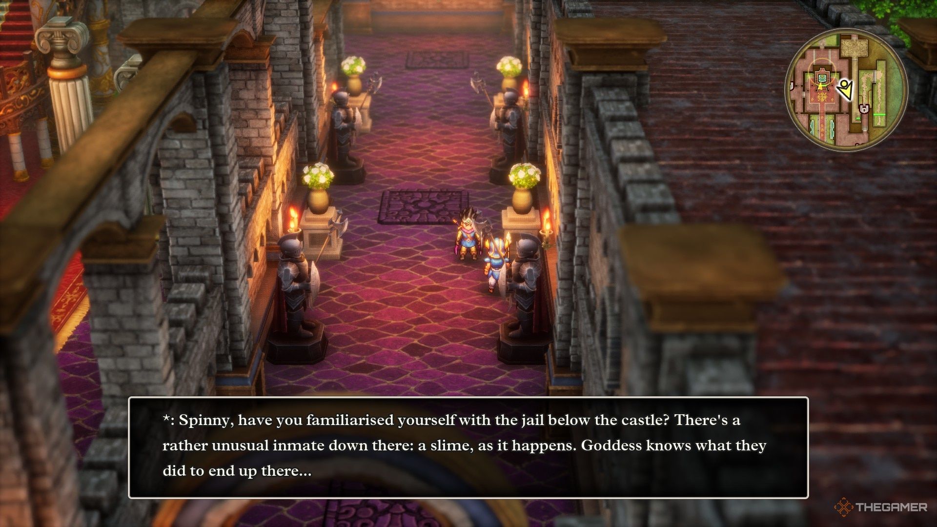 しかし、そこにはスライムもあります。スライムと話すことはできません。モンスターマスコットが刑務所に入ったことを説明したことはありません。上層階のNPCは、状況の奇妙さを指摘していますが、説明のつかない謎のままです。
