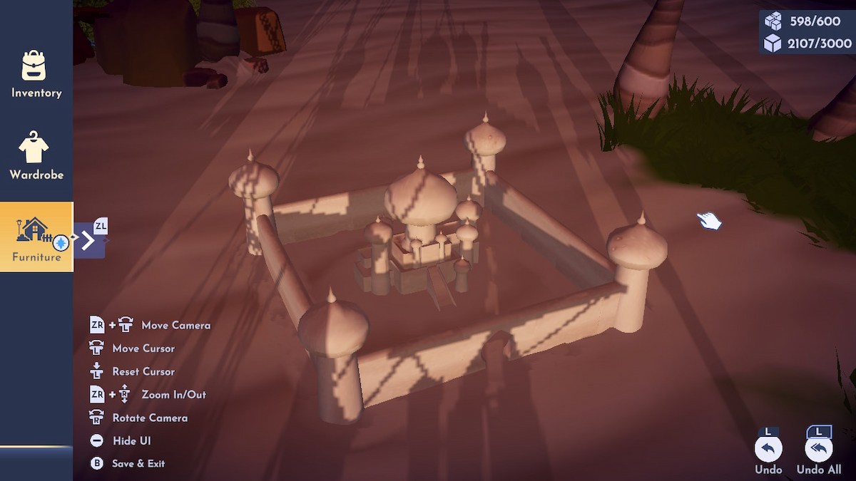 ジャスミンに戻ってください城のセンターピースあなたのデザインに追加します。それを手に入れたら、に向かいます洞察力のあるビーチ、 開ける家具モード、 そしてサンドキャッスルを作ってくださいすべてのピースをビーチに置くことによって。ゲームがあなたがより複雑なデザインを作成させないのは残念です…