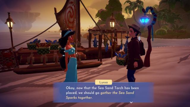 その後、このゲームは、ジャスミン(彼女は海の砂のトーチの隣にいる)と話すように促して継続します。