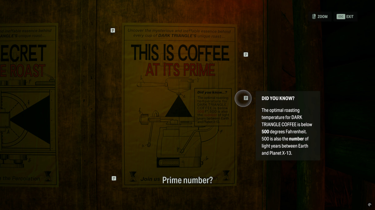 ジェシー・フェイデンは、アラン・ウェイク2の最初の主要な拡張であるナイト・スプリングスの救済宇宙に戻ります。彼女の兄弟を見つけるために、ジェシーはブライトフォールズのアミューズメントパークであるコーヒーワールドに行き着きます。ここで、彼女は何らかの理由で、たくさんの容器を開けて、いくつかの数学的な問題を解決する必要があります。クエスト中にコーヒー豆の最適な焙煎温度を理解できない場合は、解決策を紹介します。
