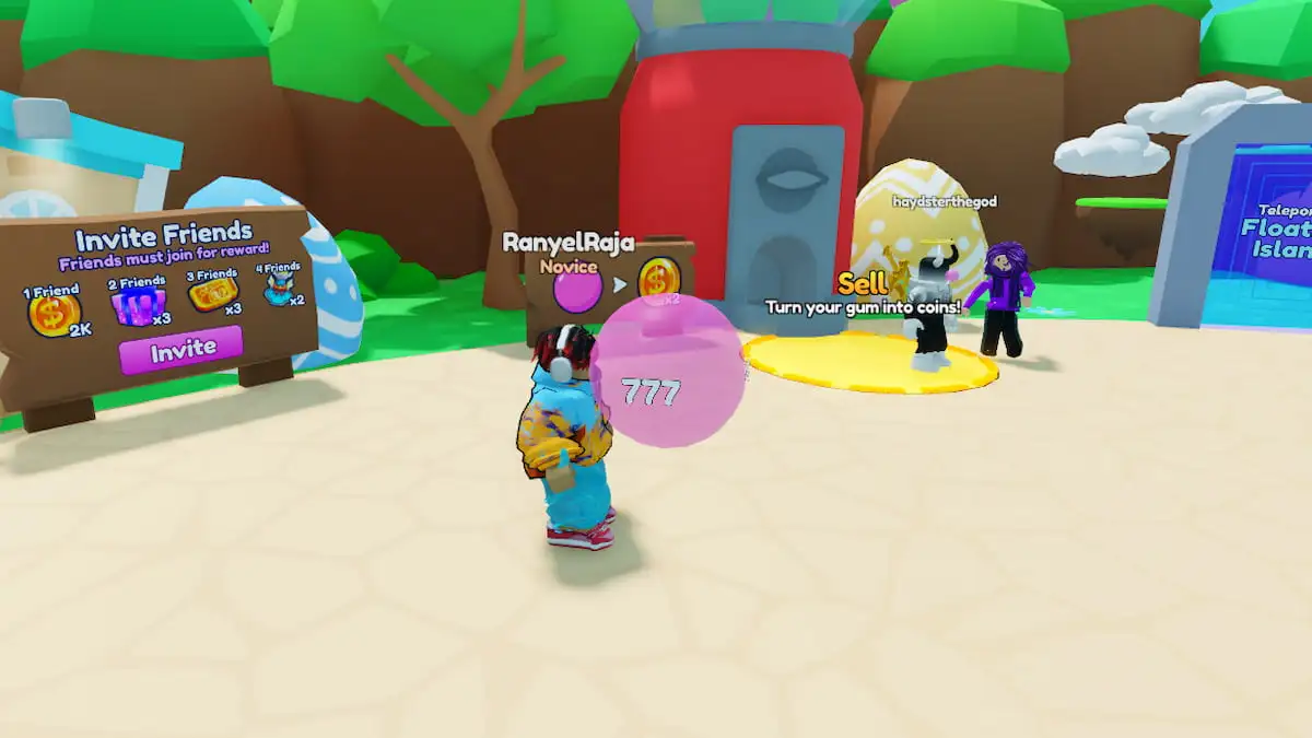 - 装備します通常のガムすべてを削除しますあなたのペット。今、あなたがサイズを得るまでガムを吹き続けてください777。さて、バブルガムの卵を手に入れるために、あらゆる世界でこのバブルガムを売ってください。