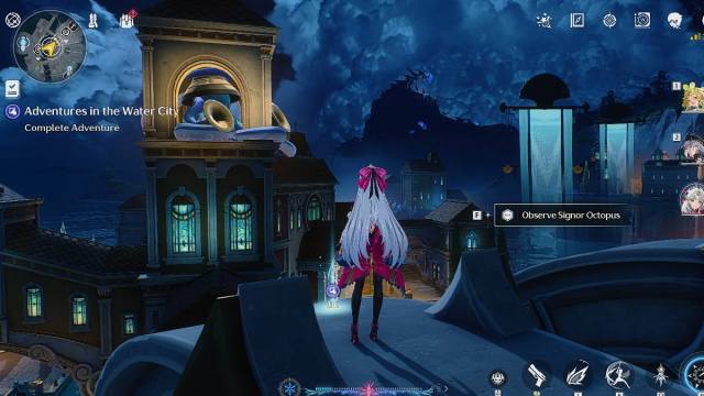 ラグーナシティスクエアの塔の上に、2つの署名者のタコエコーを見つけることができます。ただし、ウォーターシティエントリの冒険は、彼らとやり取りして冒険をすることはできません。代わりに、それらの間のアーチに登り、強調表示された場所に立つ必要があります。次に、「Signore Octopusを観察する」ためにエントリを完了するようにプロンプトを取得します。