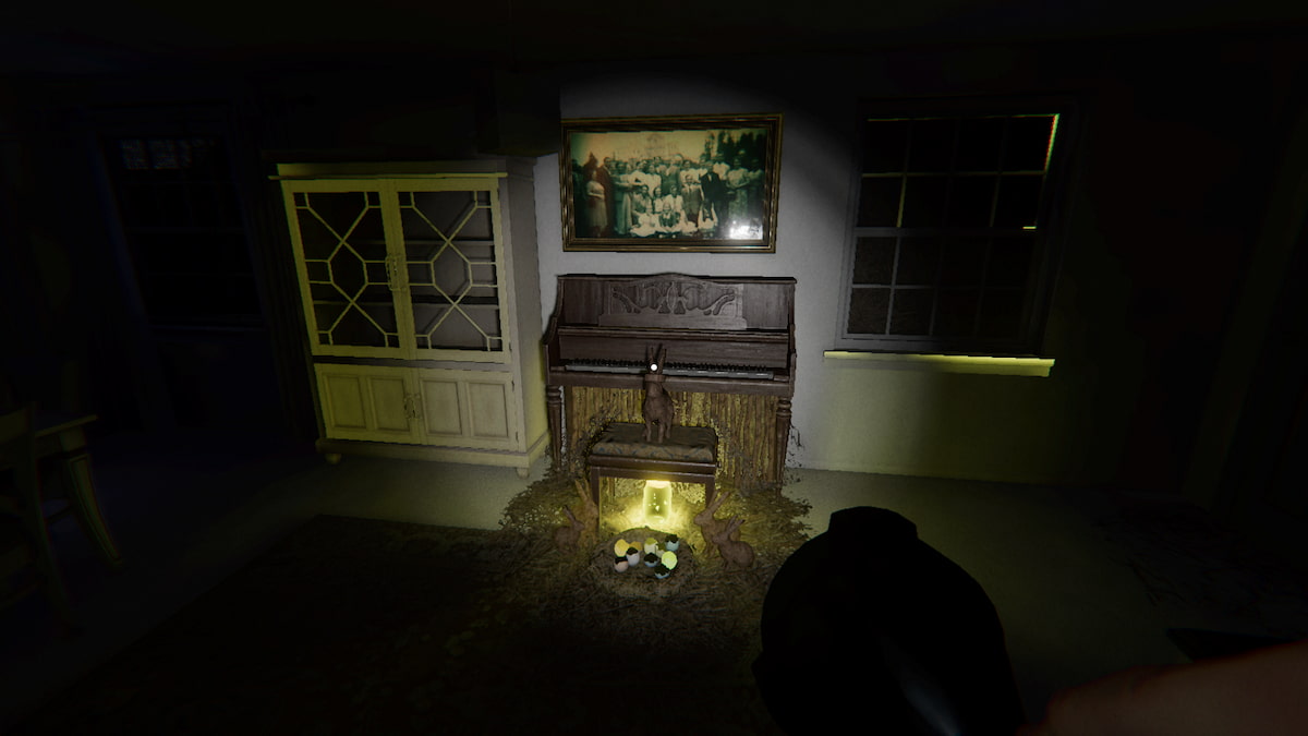 のピアノに近づきますダイニングルーム次。キッチンから、メインの廊下に戻り、裏口で隅々を過ぎて真っ直ぐに向かいます。ダイニングルームでは、部屋の中央にあるピアノのそばに地面に巣があります。