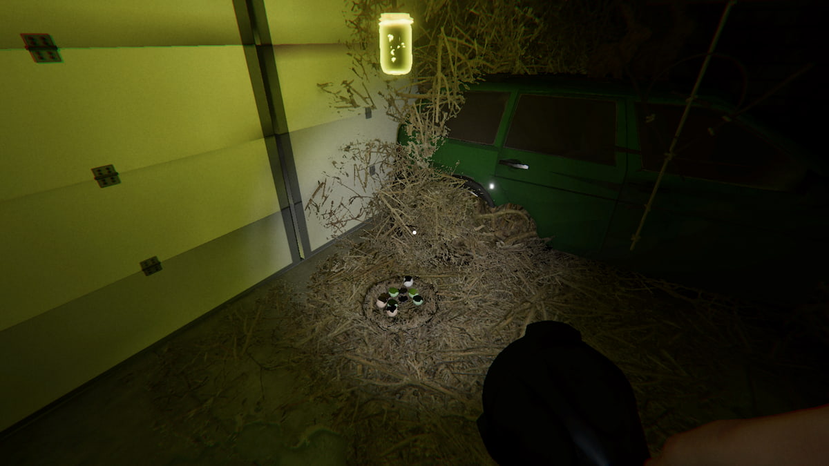 別の巣が見つかるのを待っていますガレージ1階に。ダイニングルームの右隅に向かい、ガレージに通じるドアを見つけます。ガレージのドアの近くの緑の車のバックタイヤまで歩いて見つけます。