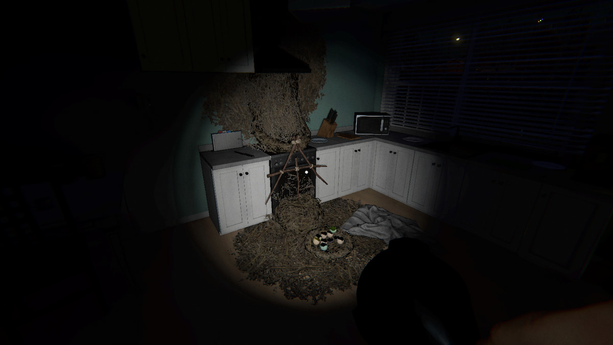 地面に巣があります台所。最後の巣を見つけた裏口から、玄関に向かい、キッチンに入るために右に向かいます。ストーブの前にある棒の山を見て、この巣を見つけます。