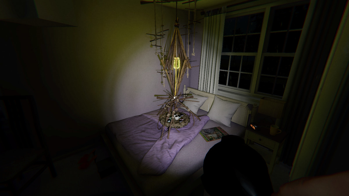 紫色の寝室を出て、右折して、まだ探索していない狭い廊下を歩き始めます。右折して、アクセスするために出くわします緑の寝室。この部屋のベッドの上に座っている別の巣があります。