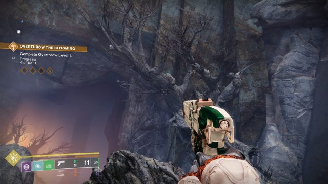 この洞窟の口の右側には、巨大な灰色の木に気付くでしょう。旅行者のビジョンがありますその上部にある最も遠い枝の終わりに。それをつかもうとして頑張ってください。私のウォーロックはオイルタンカーのように動きます。