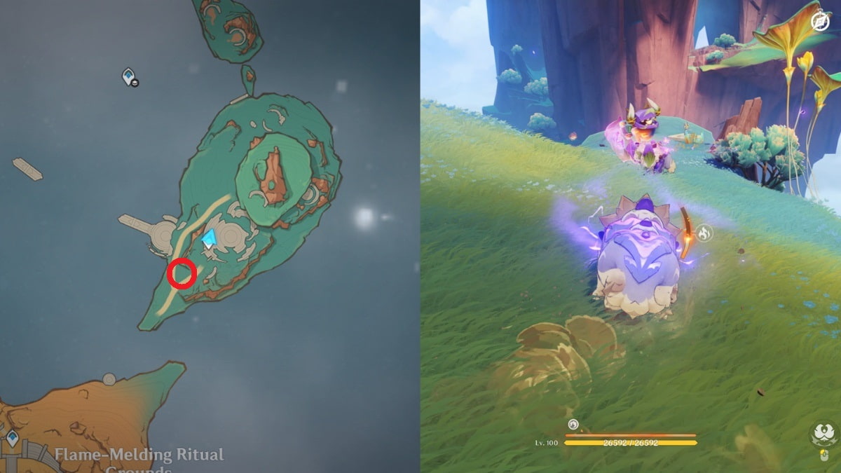 Genshin ImpactのMatador Monetooは、ナトランの古代の神聖な山の探検整備士であり、通常のMonetooの変種です。彼らの課題を完了すると、胸の報酬が得られます。