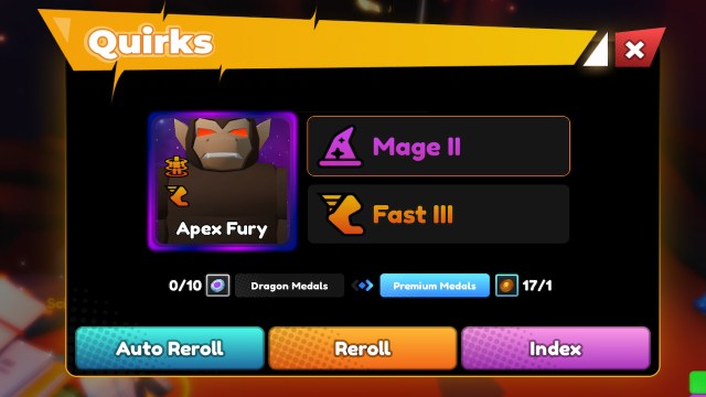 プレミアムメダルを使用して、あらゆるキャラクターの癖を再編成でき、リロールには1つのプレミアムメダルのみが必要です。また、プレミアムメダルを使用しますより良い癖を転がす可能性を改善します。