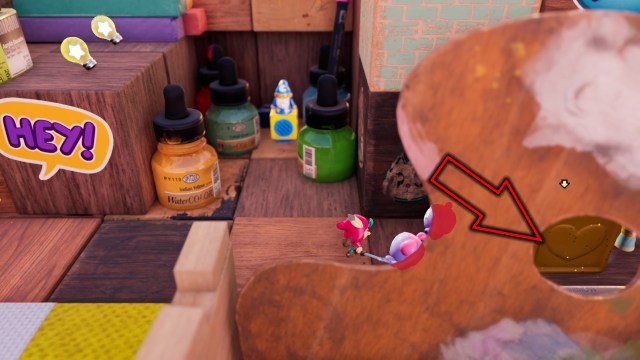 次のスクロールはレベルの奥深くにあります。チルトグローブを見つけるまで、いつものように再生します現実の世界で。巻物は、右側のいくつかのペイントポットの後ろに隠されています。