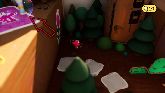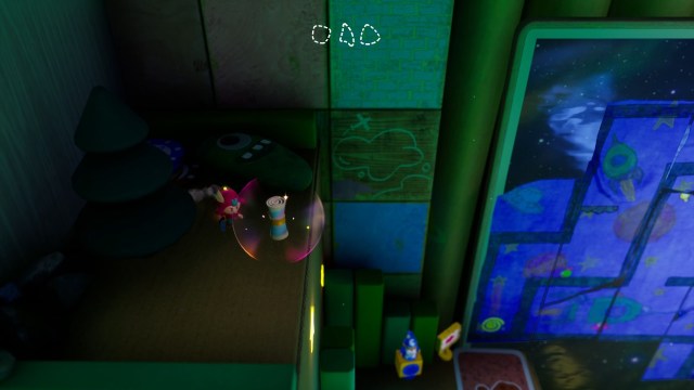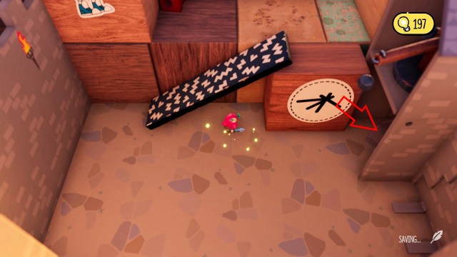 左上に本の外に隠されたもう1つの巻物があります。ドールハウスに向かうランプから飛び越えることができます。ルビックキューブの上を歩きます、そして、それを手に入れるために静止したものを飛び越えます。