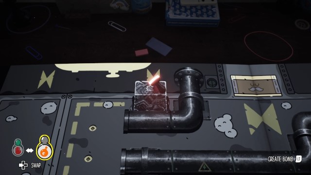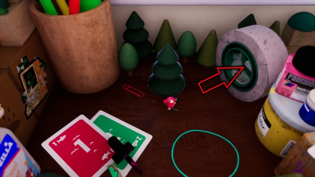 本の外のクエスト中に、マップの右上に向かいます。上の画像のテープのロールを飛び越えて、バグを倒して到達します。