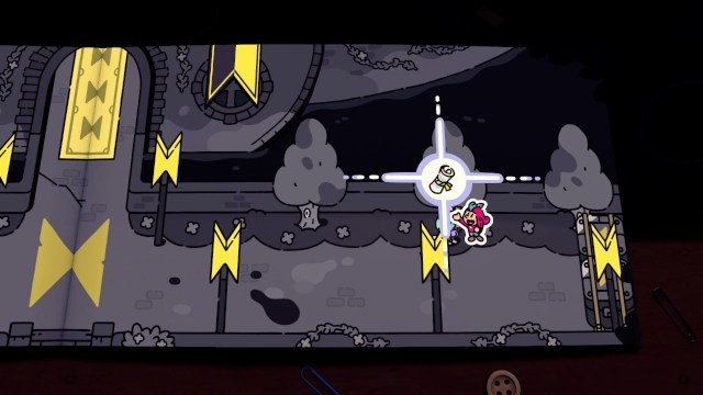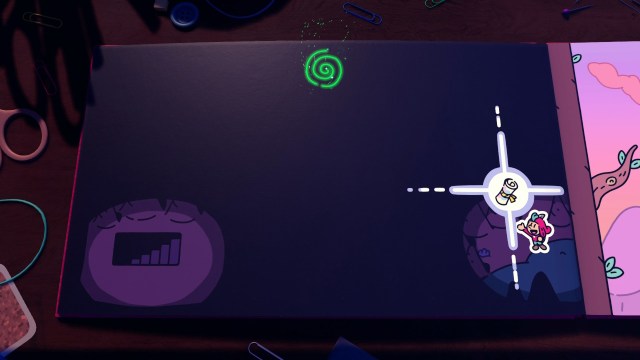 ジェットパックセクションでは、3つのアートスクロールが手に入りますページから。最初はマップの左上隅にあります。壁の2Dセクションの前にミニバードに到達すると、ここにジャンプできます。