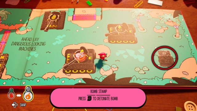 ポータルを使用して、本の外を移動します爆弾スタンプでハムルンプの胸像を爆発させます巻物を明らかにする。