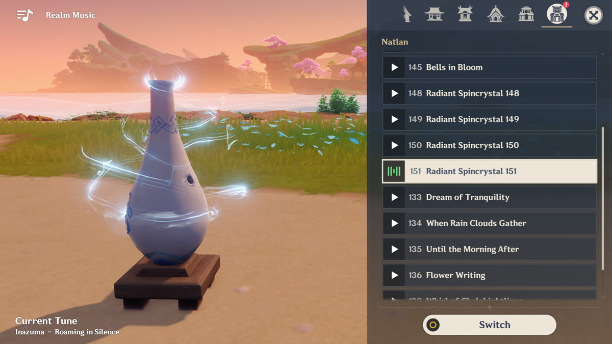 すべての放射性脊髄を収集した後、Serenitea Potに入り、ユーフォニウムUnbound Furnishingと対話して、新しいサウンドトラックのロックを解除できます。当然のことながら、5つのアトッカパン放射脊髄のすべてのロックを解除します。それらのいずれかをレルムミュージックとして選択して、セレニテアポットに入るたびに聴くこともできます。