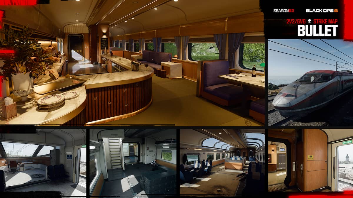 「このシーズンのミッドストライクマップは、その狭い屋内馬車に沿って戦いを間近に押し上げます」とActivision氏は言います。 「ダイニングカー、セカンドクラスの座席、そして倒れた導体が一枚で目的地に到達する希望を払拭するキャブまで、各車を分離する自動スライディングドアを通り抜ける自動スライディングドアを通り抜ける。