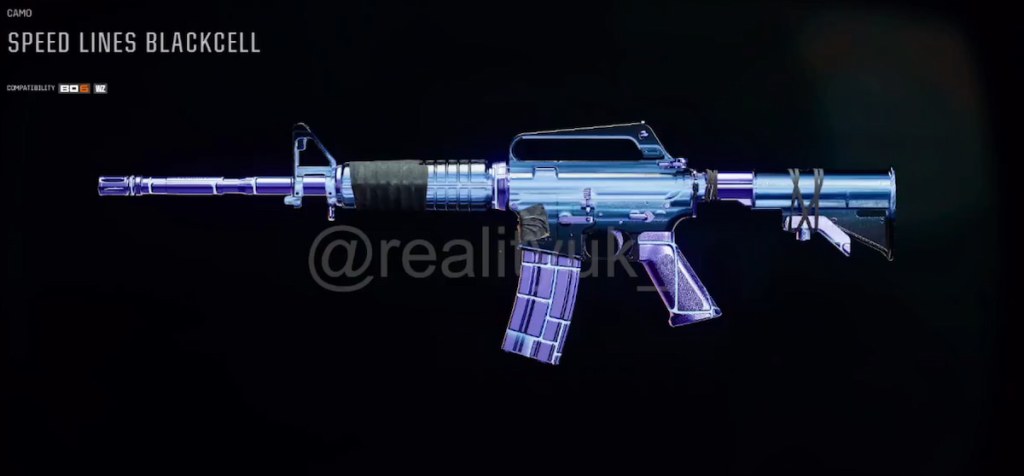 以前のすべての報酬のロックを解除して、にアクセスしますアニメーション武器迷彩 スピードライン、ブラックセルバトルパスを所有している人のためのバリアントもあるため、余分な現金を投資した人は、2番目の排他的な迷彩を獲得します。