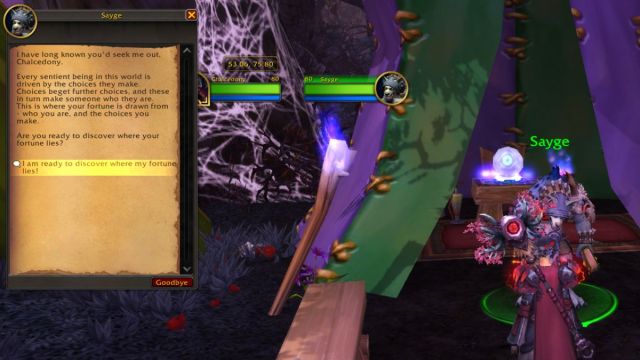 Saygeは、便利なバフとブーストを探している場合、World of WarcraftのDarkmoon Fairleイベントで訪れる主要なNPCです。彼はあなたが彼に話しかけ、あなたと話を共有し、重要な質問への回答でチップを入れるように頼むように頼むとき、あなたにあなたの財産を伝えることを申し出ます。