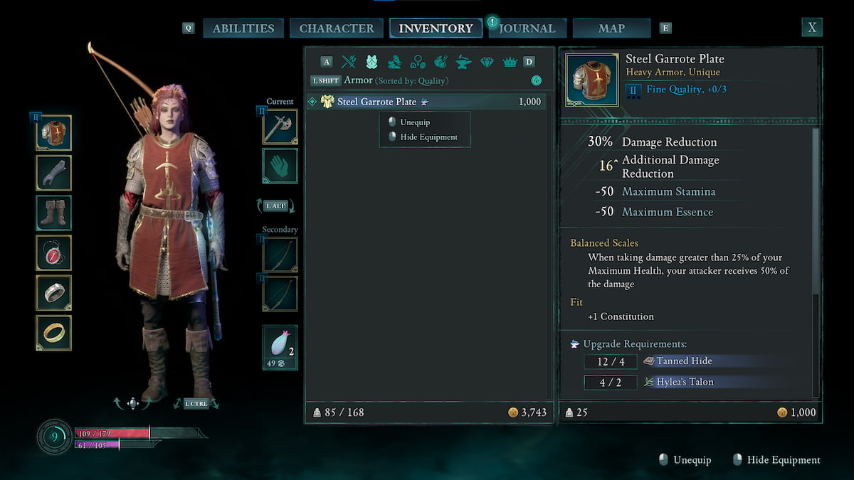 | スチールギャロートプレート | 重い鎧 バランススケール:最大の健康の25%を超えるダメージを受けると、攻撃者は損害の50%を受け取ります フィット:憲法を1つ増加させます | NACIBと戦うとき、破滅的な洞窟の死体からプレートを拾うことができます。 | ![]() |