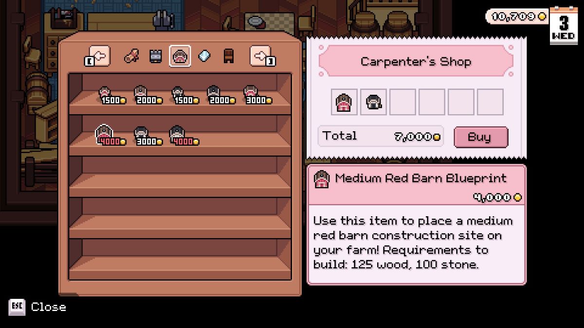 | ミディアムコープ | 3,000 t | x100木材 x75石 | カーペンターズショップで購入するためにヘイデンの小屋と納屋をアップグレードする |