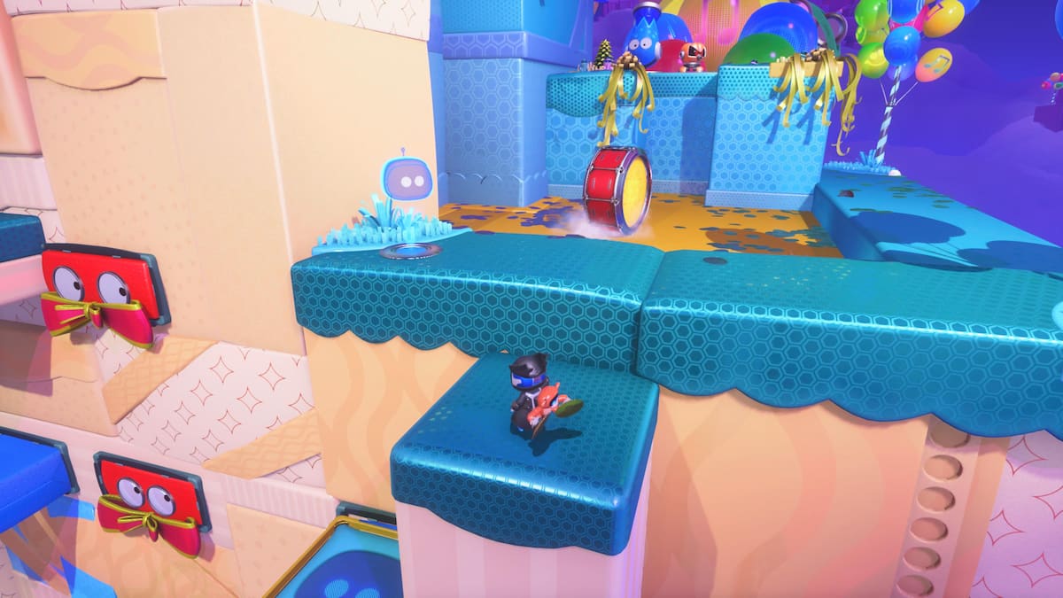 パズルのピースに乗り込むには、白いぎざぎ口の目の近くのシンバルを鳴らしてシャッターを伸ばし、パズルのピースに到達するためのプラットフォームを作成します。ジャンプして、最後のアンコール惑星内の最後のパズルピースを獲得してください。