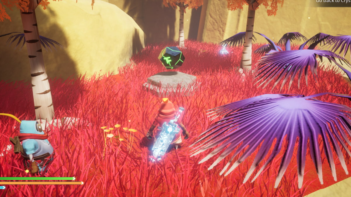 3回目のアップグレードは、あなたが手に入れる石の洞窟のすぐ上にあります最初のコンストラクト。洞窟の左側の丘を上って、紫色のスペクトルゲートに到達します。ここから、いくつかの木や赤いオーブクリスタルのそばに行きます。健康のアップグレードに到達するまで続けてください。