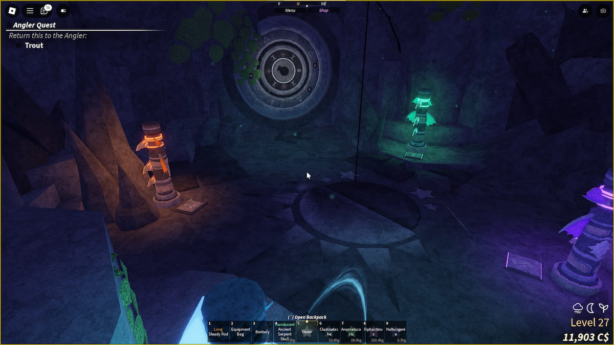 めまいに移動し、深さキーで大きなゲートを解き放つことで、深さに到達できます。中に入ると、この拡張に伴う魚を捕まえることができます。古代の深さの蛇は、深さの特定の領域にしか捕獲できないイベントフィッシュです最も暗い夜気象イベント(これにより、サーバーは夜にほぼ真っ黒になります)。