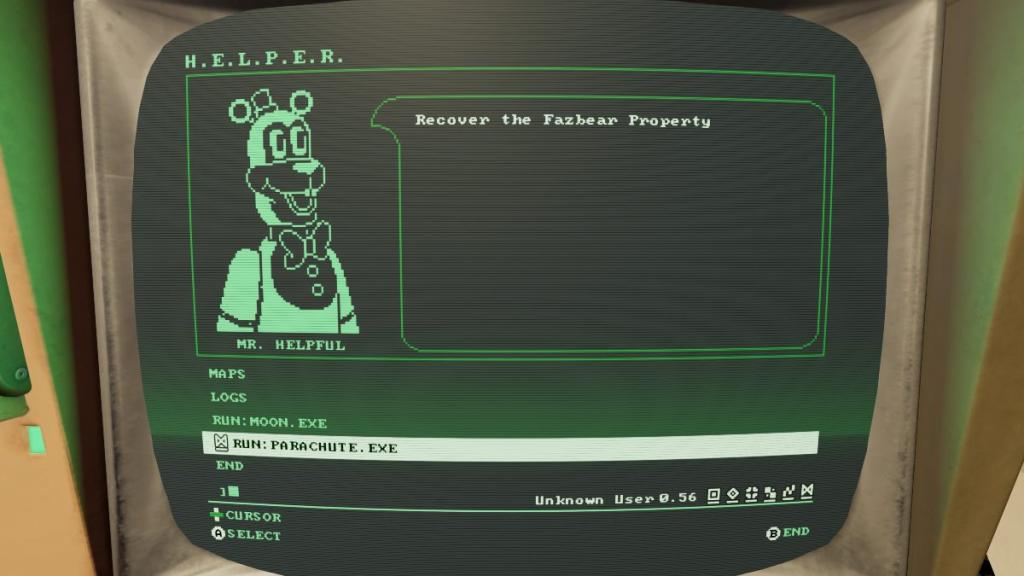 これは、最後のチェックポイントから以前のプレイスルーを継続することで(最後にセキュリティオフィスに戻る必要がある場合)、この結末を取得できます。家に帰る代わりに、エグゼクティブにアクセスできるようになったので、端末にParachute.exeを選択します。秘密のハッチが部屋に開かれ、エドウィン・マレーのファズベアのダイナーと彼の家族の家のレプリカにあなたを導きます。フレディ、ボニー、フォクシー、チカのプロトタイプバージョンがここにあります。彼らのスーツを使用してパワーを排出すると、赤いスポットライト(各アニマトロニクスが最初の5泊で立つのと同じ位置)に立つ必要があります。
