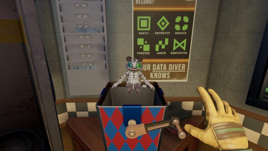 この結末のポイントは、エドウィンが始めたものを完成させ、グリッチされた許可をM2(David)に挿入することです。 6つのテープすべてが見つかり、壁に配置されると、部屋に通気口が開き、デビッドの寝室につながります。ただし、行く前に、在庫チューブシステムに行き、白いタイガーのおもちゃを取り出します。