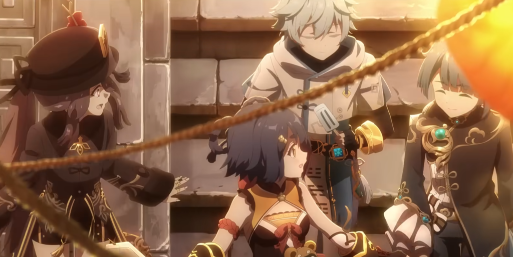 Hu Tao、Chongyun、Xingqiu、およびXianglingは、LiyueのLantern Rite Festivalに向かいます。 Mihoyo経由の画像