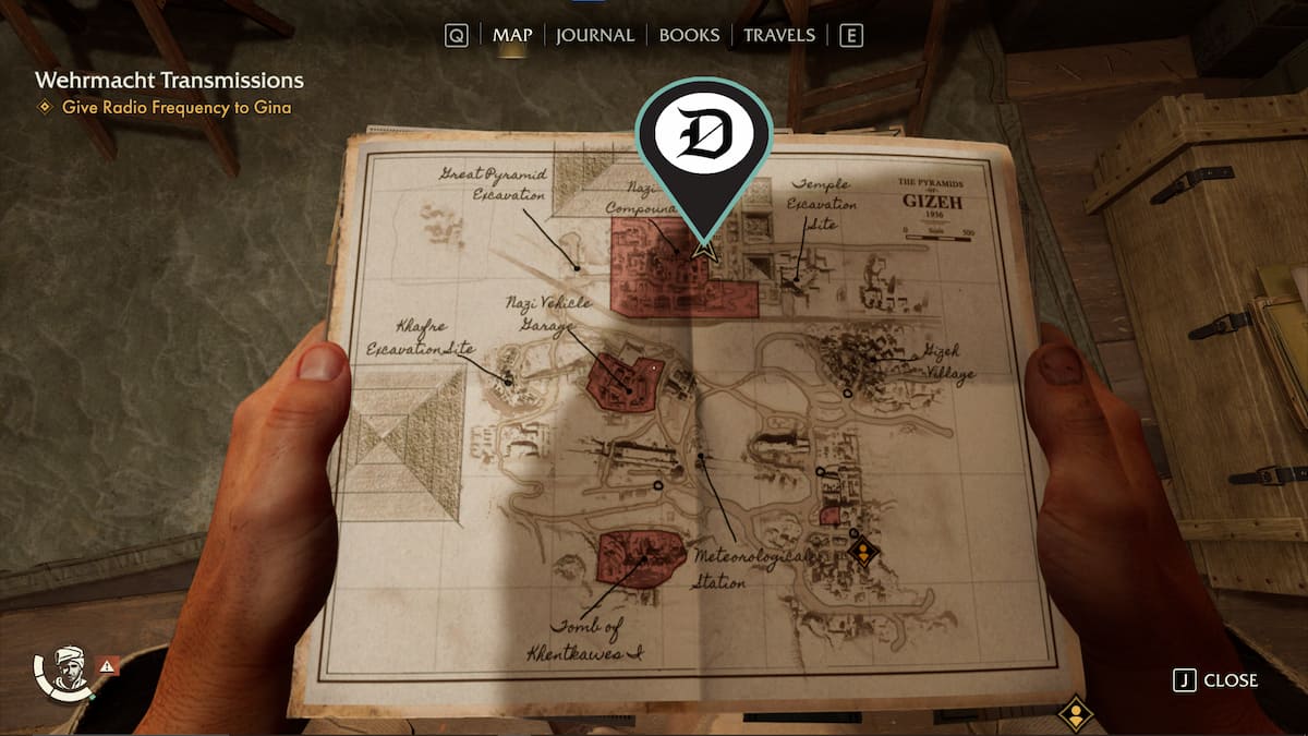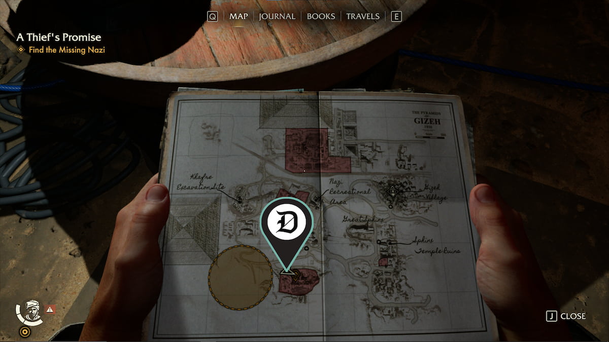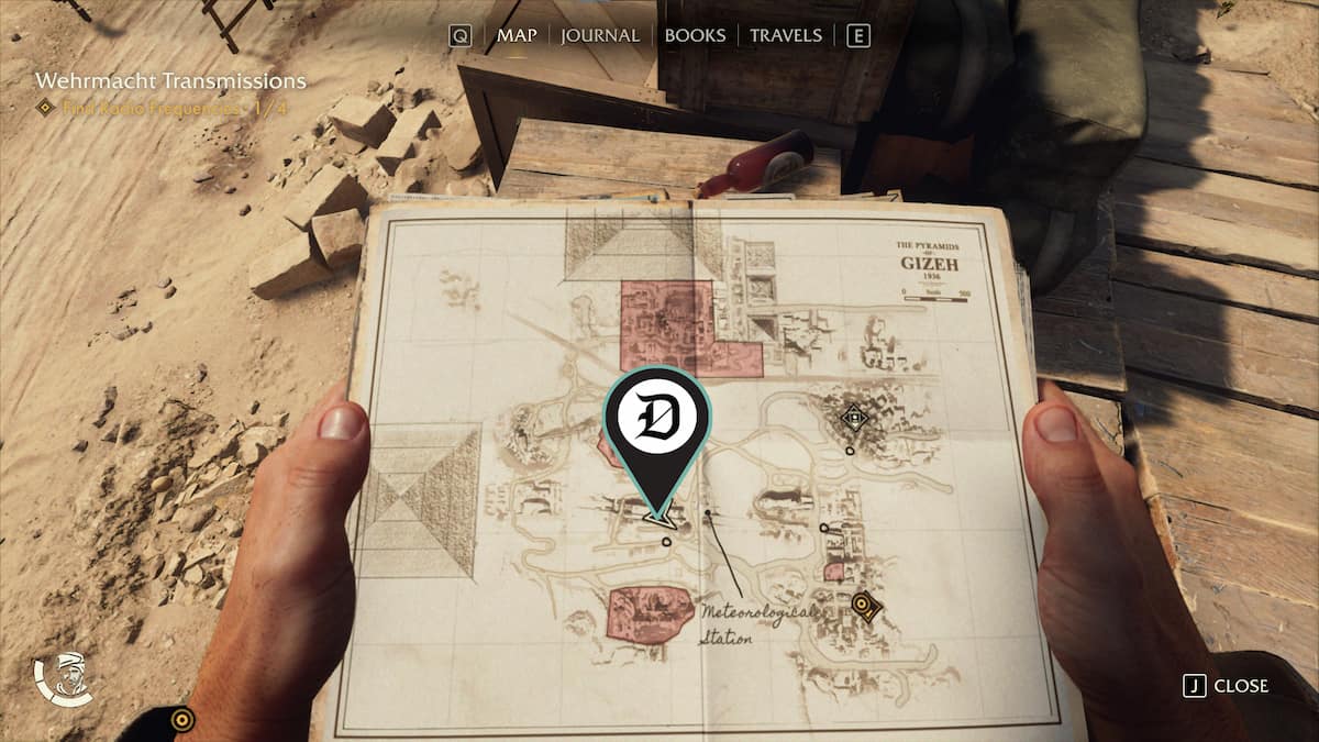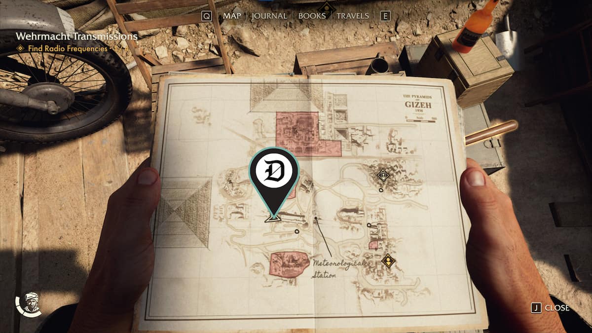 | Khafre発掘サイト | Khafreサイトの最後の薬のボトルは、ナチスのテントを見つけることができる中央にあります。ボトルをつかむ前に、それを保護する警備員をこっそりと派遣する必要があります。 | ![]() |