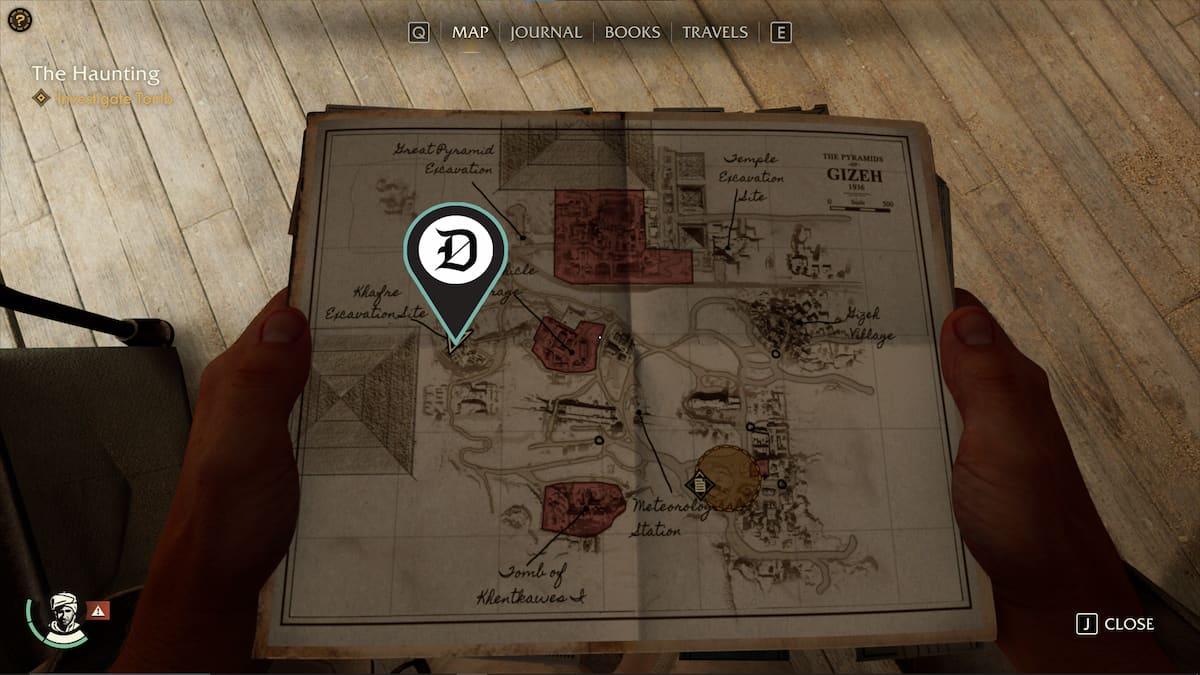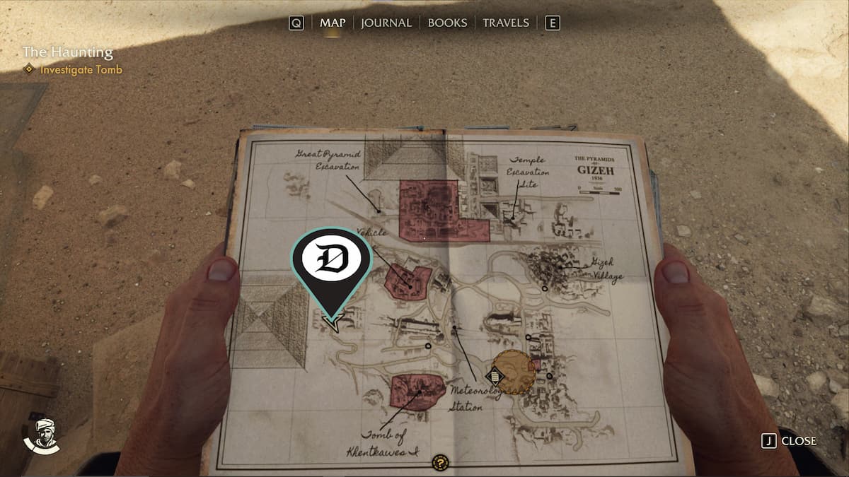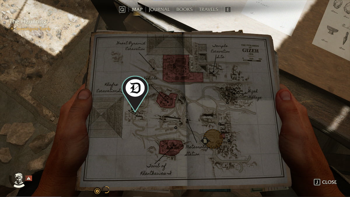 | 葬儀の寺院遺跡 | ギゼの地図の西の西側には、葬儀の寺院遺跡の中には、テントの下にある開いた状態に薬のボトルがあります。問題なくこれをつかむことができるはずですが、さまよう犬のパックに注意してください。 | ![]() |