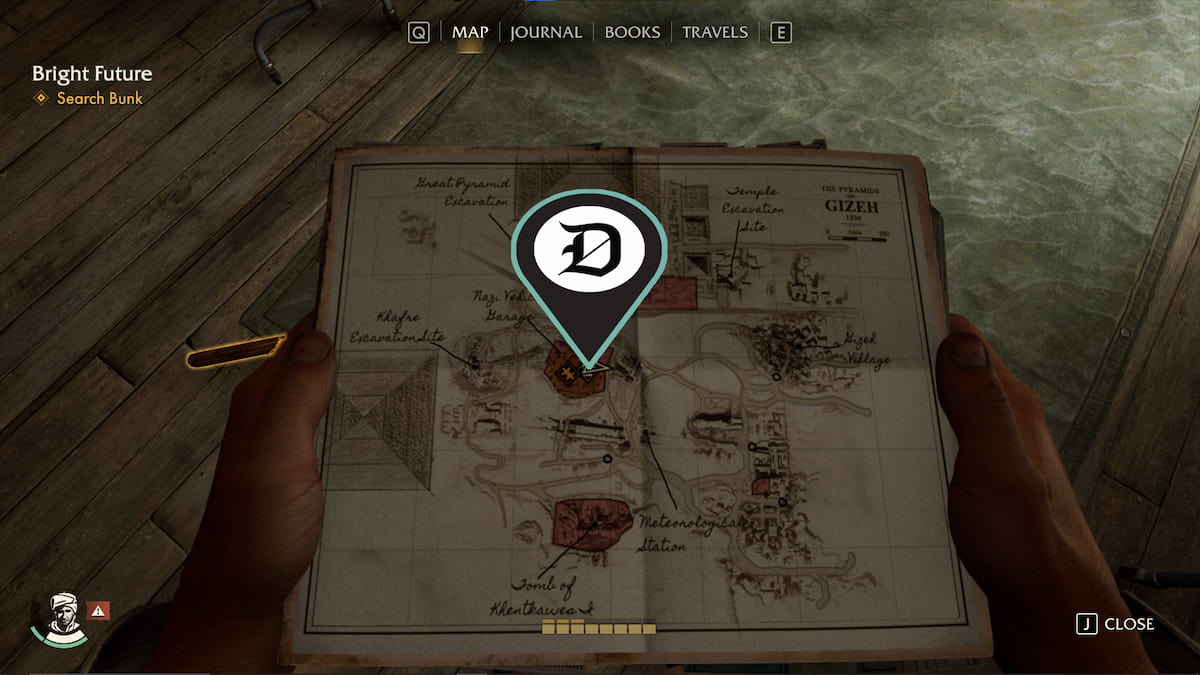 | Khentkawes Tombサイト | Khentkawes Tombサイトの最後の薬のボトルは中央にあります。エレベーターを再アクティブ化し、電力を回復する必要があります。戻ったら、エレベーターの最上部エリアに向かい、呼び出しますが、最上階に到着する前に着地します。その後、隠された場所で薬のボトルに到達できます。 | ![]() |