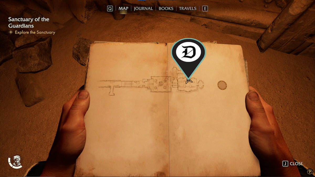 | 保護者の聖域 | Guardiansの聖域の中には古代のアーティファクトがあります。これは、Gizehで完了しなければならない最初のクエストの1つです。インディアナ州がジーナにスローダウンするように言った後、この寺院に入った直後に現れます。 | ![]() |