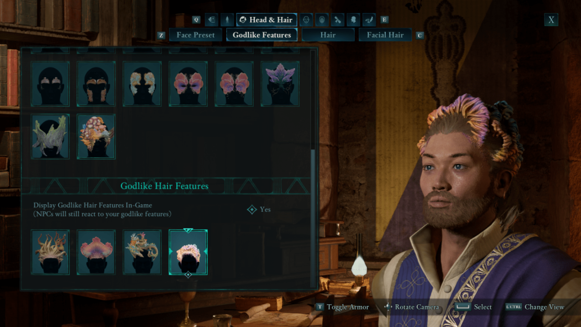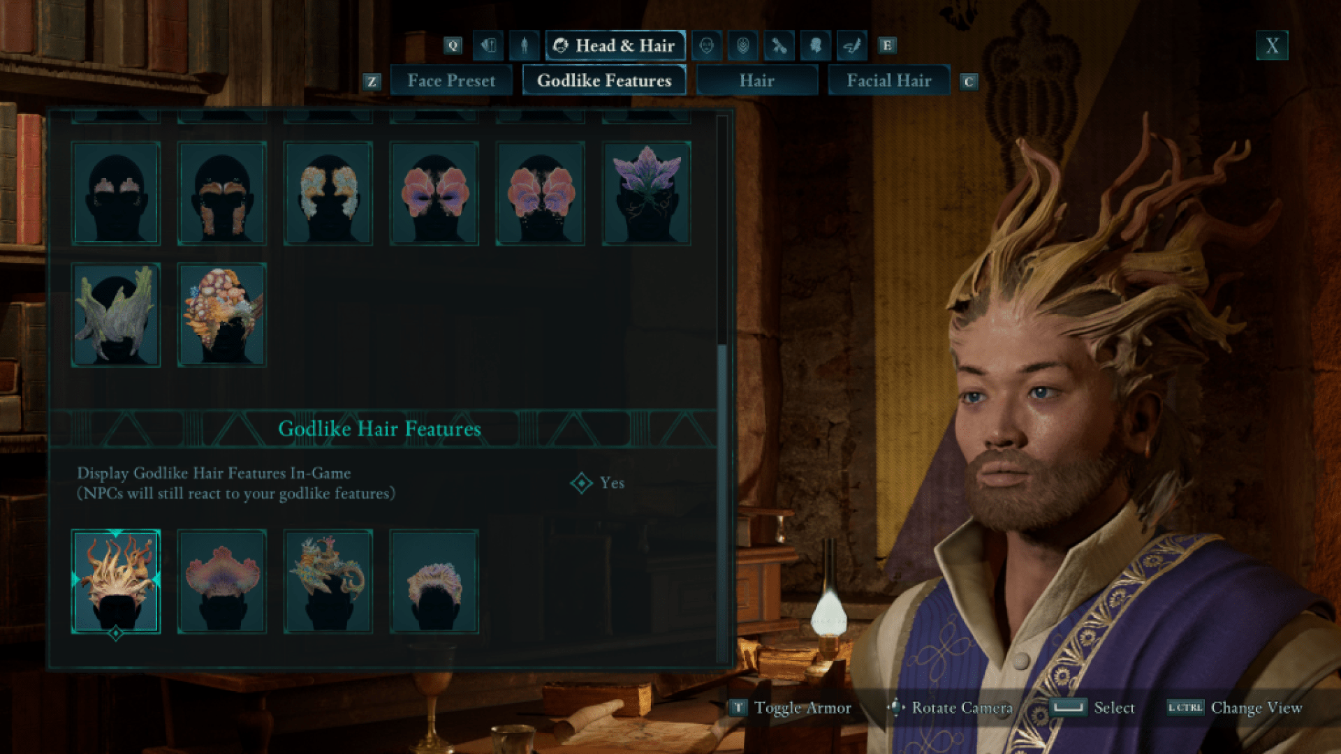 あなたのキャラクターの顔と同じように、あなたは彼らの髪のために神のような特徴を持つことができます。オプションの数は4つに制限されているため、選択肢は比較的限られています。