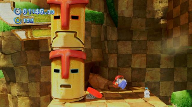 Chao 2とChao 3の両方が互いに近いです。スピニングプラットフォームをドロップダウンするレベルのパートに到達すると、発射を空中に送り出すスプリングに向かいます。